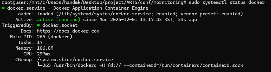 이후 변경사항을 적용하기 위해 `wsl` 을 재부팅 하고 `docker` 가 자동으로 실행되게끔 `systemctl` 에 등록해야 한다.