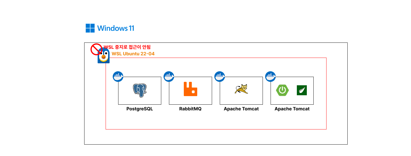 회사에서 폐쇄망 운영 환경의 SI 사업에 투입되게 되었다. 운영 환경에는 서버가 총 4대(Rocky-Linux 9.5 3대, Windows 11 pro 1대) 가 있고, 그 중 Windows 11 pro 서버는 모니터링 서버로 `SpringBoot + Thymeleaf` 웹, `PostgreSQL DB`, `RabbitMQ`, 그 외 기타 WAS 가 Docker Container 로 구동되고 있다.