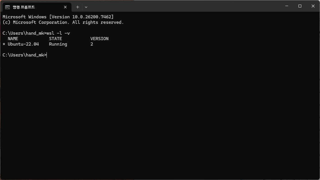 이후 재부팅하여 테스트 해보면 자동으로 WSL 이 구동중인걸 확인할 수 있다.