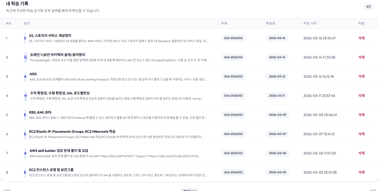 자격증은 3월 내 취득을 목표로 준비했고, 김선우 멘토님께서 정적 페이지에 Lambda 기반 스터디 기록 웹을 배포해주셔서 여기에 공부한 내용을 기록했다.